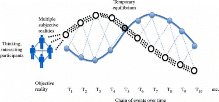 For a time, the aggregate subjective realities of market participants actively affect the system