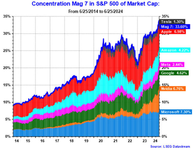 Which have powered the so-called ‘Magnificent 7’ into the stratosphere with these seven stocks