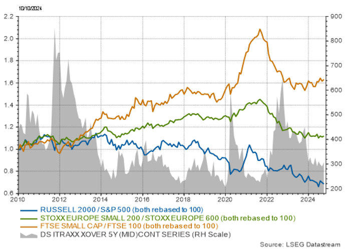 No surprise therefore that small cap stocks have tended to outperform when credit spreads