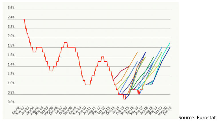 happened, while the Euroarea unemployment rate fell faster than the ECB predicted. The ECB’s